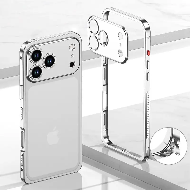 CaseSun-Shockproof iPhone 17 Pro Max CaseSun metal bumper with reinforced aluminum frame against impact.CaseSun-Slim bezel design delivers a lightweight feel while preserving the bare-metal texture.