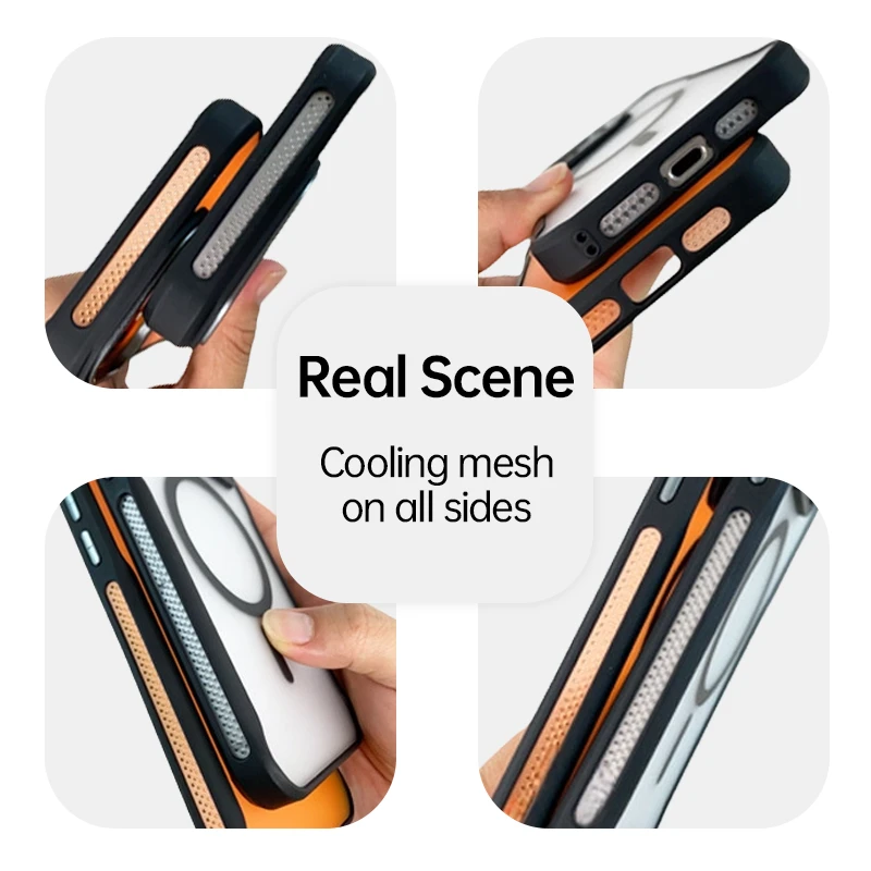 Unique perforated frame design ensures heat escapes from every side — say goodbye to overheating during gaming or charging.