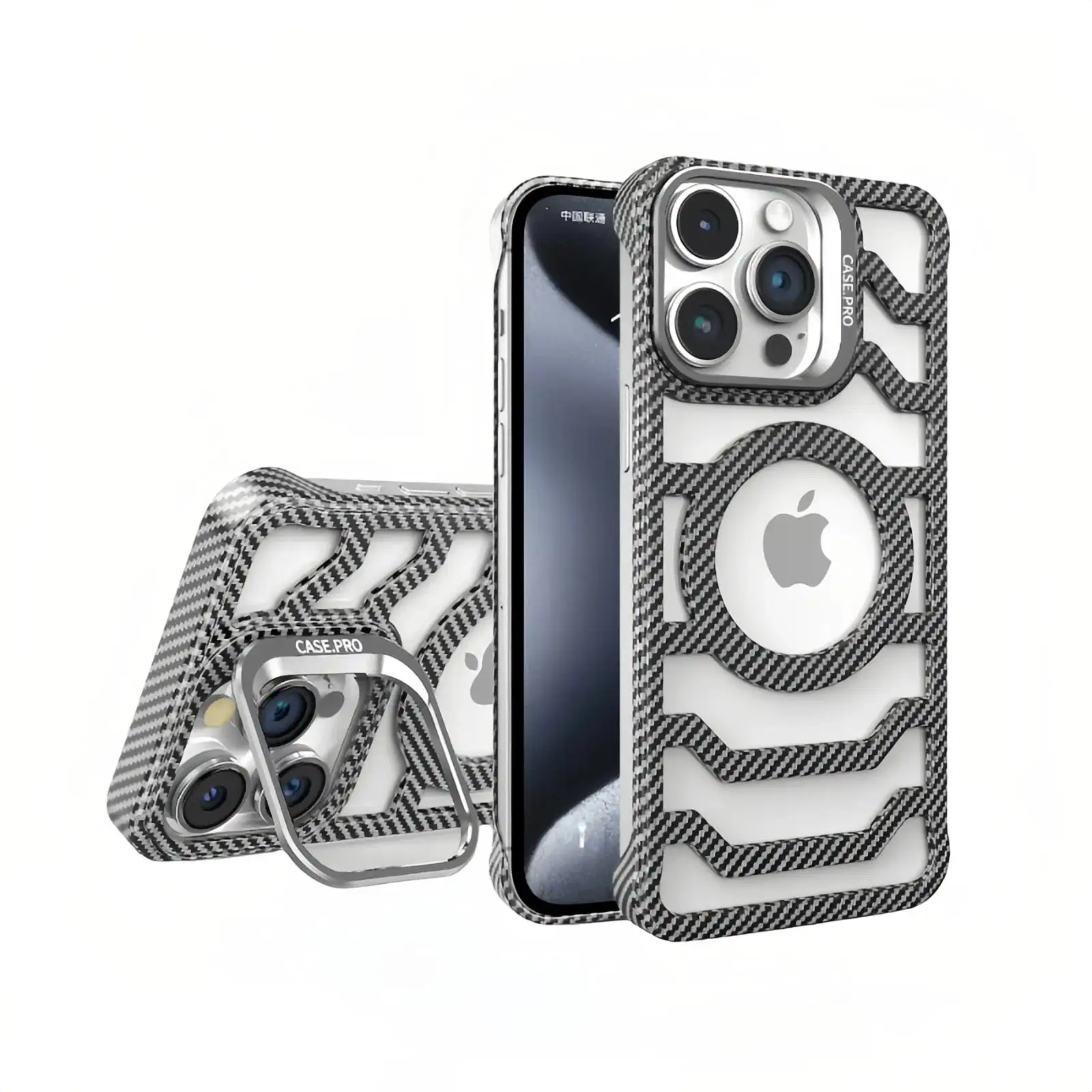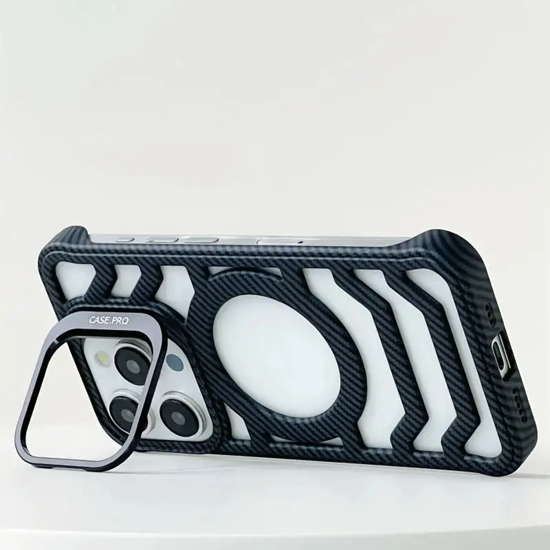 Snaps instantly to all MagSafe chargers and accessories — clean, reliable, effortless.Built-in Lens Kickstand